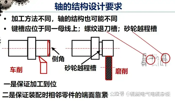 The keyway shall be located on the same bus for ease of milling. For the shaft segment that needs grinding, in order to facilitate grinding, the grinding wheel crossing groove should be left in the axle journal and the axle shoulder. When cutting thread on the shaft, there should be a thread retreat groove that is convenient for the turning tool to exit. The relevant size can be consulted in the manual.