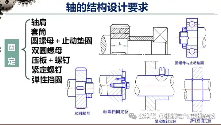 Axial fixation is to ensure that the parts have a certain relative position, prevent it from doing axial movement, and can withstand axial forces. The shoulder and ring are the most common fixation methods and can withstand large axial forces.