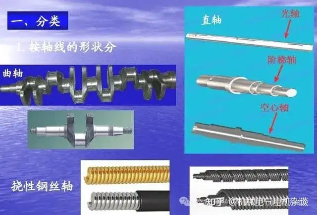 Rotating shaft: bear both bending moment and torque. Transmission shaft: the main bearing torque. According to the structure shape is divided into straight shaft and crankshaft. According to the diameter change, it is divided into optical axis and stepped axis. There are also solid shafts and hollow shafts. This paper mainly introduces the rotating shaft.